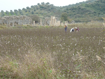 After Priene we drove on, intent on nothing but finding that nice campground in Selcuk we had heard of, near Ephesus, and taking several days off. We are tired travelers, and Vicki's arm needs rest. But the cultural and historical sites in Turkey are without end, and, not far from Selcuk, without even noticing the brown cultural/heritage signage, we passed another ruined city, this time Magnesia. It was in none of our guidebooks. We had to stop for just a few pix outside the fence. Magnesia was settled by Greeks from Thessaly, Leukippos and his followers, the Magnetes (could be a rock band; "and now, direct from their home town in Thessaly, and following a succesful tour of Asia Minor, please welcome Leukippos and the Magnetes..."), in the 5th century BCE. It became a religious center under the Byzantines, then declined. Aegean and Mediterranean Turkey are just littered with such places. I wonder whether anyone has seen them all.