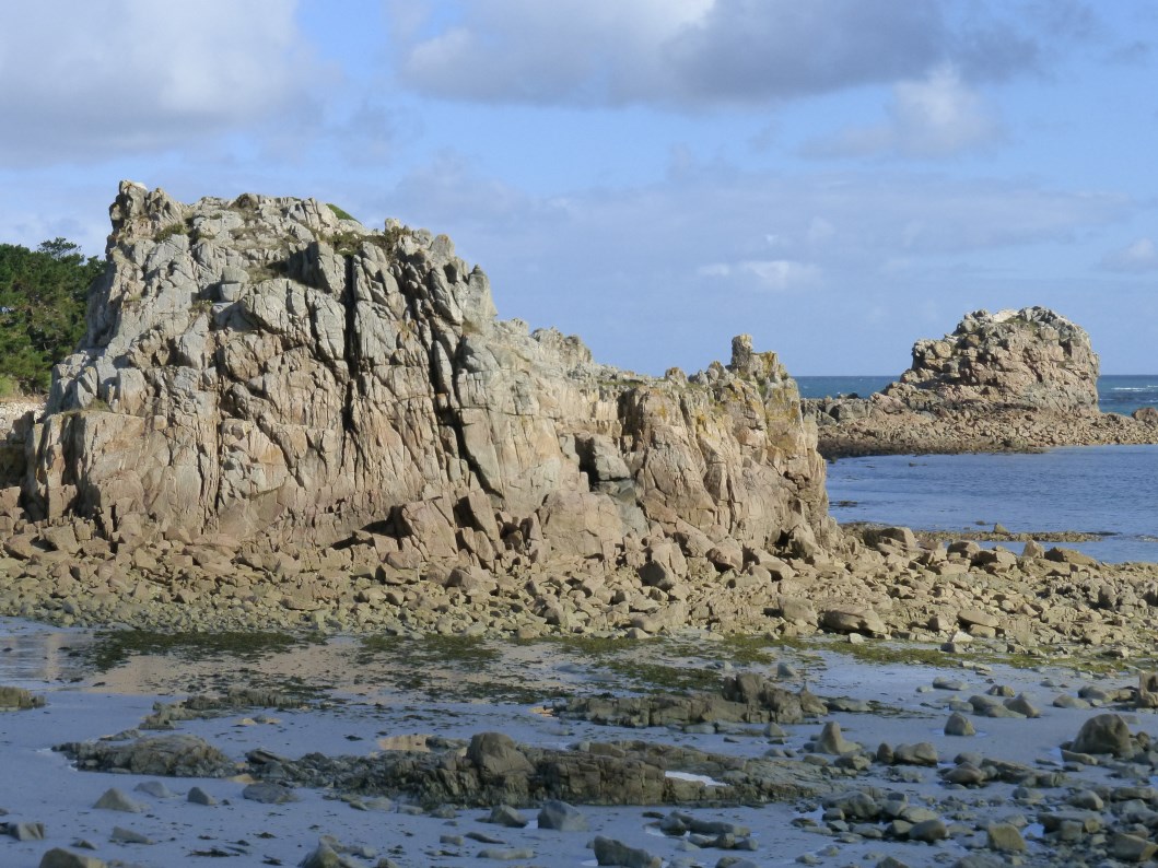 Sometime in the 1980s, during a visit here, Vicki bought a poster of what has come to be known as "The House Between the Rocks." We've always thought it epitomized the Brittany coast, but never took the time nor the trouble to see exactly where it was nor to visit it. Too many other things to visit in Brittany; and most of this was long before searching on Google. The poster still hangs in the library at Sentinel High School in Missoula. We easily found "The House Between the Rocks" this time and were sure not to miss it. But first we took a walk along the coast en route.