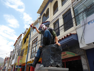 | The square and main drag are lined with these more than life- sized painted statues of characters of local legend and lore... |