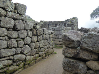 Our guide, Charlie, wanted us up and on the road at 5AM again, so we could see the sun rise, or maybe it was to avoid the long lines. We compromised on 6:30, waited in relatively short lines, and were on the mountain by 8AM. The lines were for the bus: we had already entered the site the old-fashioned way--on foot, via the Camino Inka--and were quite content this day to ride the bus up the dusty 10 mile road.