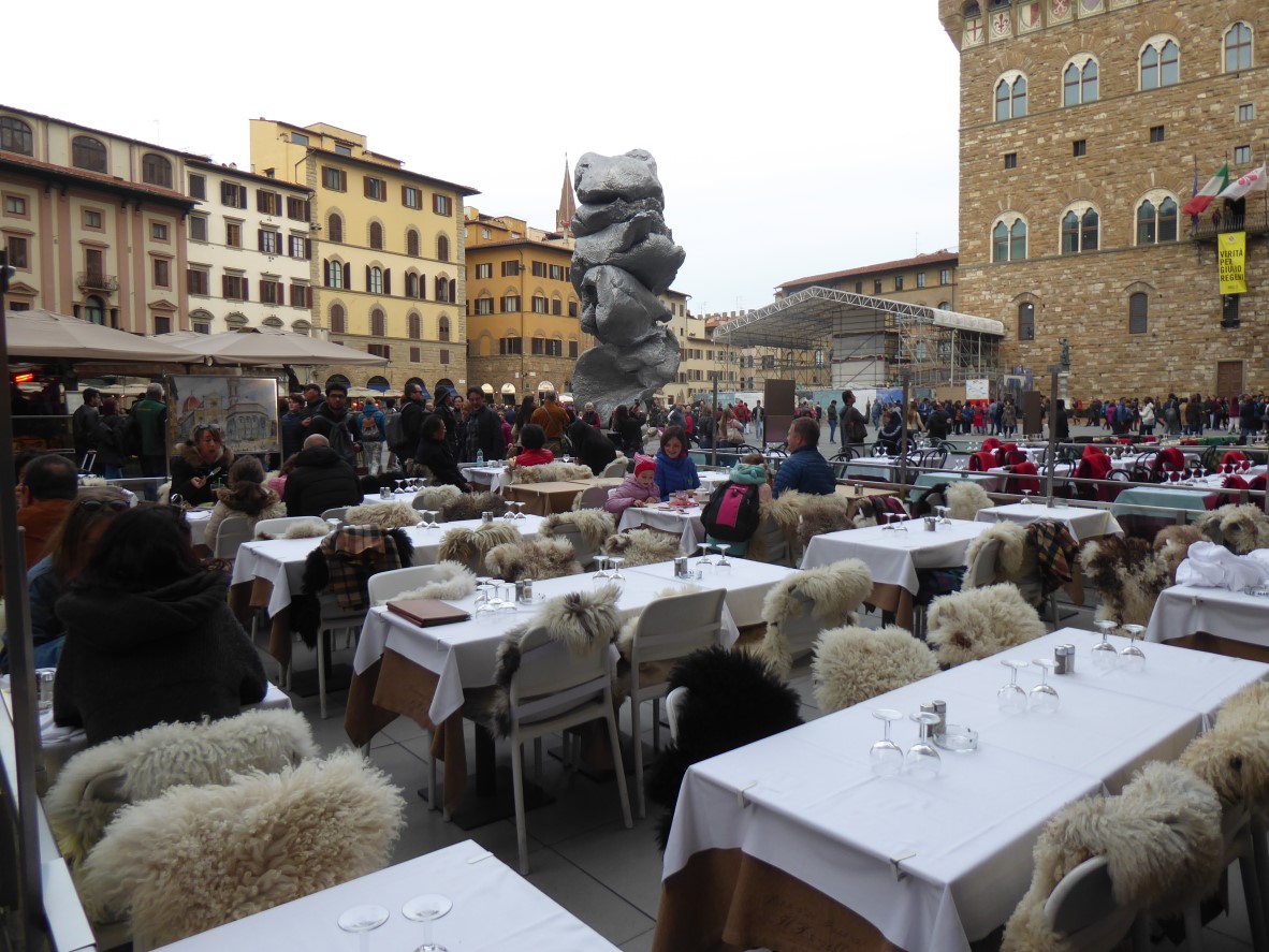A favorite place in Florence I never miss...in the main square, where they tortured, hanged, and then burned Savanarola at the stake; thus always to demagogues |