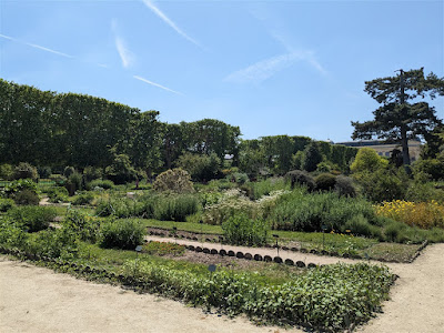 Although our apartment is just steps (255) from Luxembourg Garden, which we've frequented, we thought we'd pay a visit to the next great park over, the Jardin des Plantes. Whereas Luxembourg is more for fun and relaxation, the Jardin des Plantes is a naturalist's center, with botanical gardens, museums of science and natural history, paleontology, and more. We've visited it several times over the years. This time we were enticed by the prospect of blooming roses, but we visited several sections of the park we'd not seen before.
